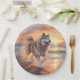 Sandy Paws Alaskan Malamute Dog on Beach Sunset Paper Plate
