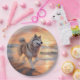 Sandy Paws Alaskan Malamute Dog on Beach Sunset Paper Plate