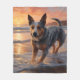 Sandy Paws Australian Cattle Dog on Beach Sunset Fleece Blanket