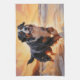Sandy Paws Bernese Mountain Dog on Beach Sunset Tea Towel