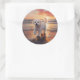 Sandy Paws Bichon Frise Dog on Beach Sunset Classic Round Sticker