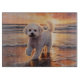 Sandy Paws Bichon Frise Dog on Beach Sunset Cutting Board