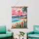 A peaceful tropical shoreline where golden sand meets rolling turquoise waves. Lush palm trees sway under a dreamy pink and teal sunset. The perfect escape for those who love the beach and ocean breeze.