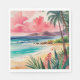 A peaceful tropical shoreline where golden sand meets rolling turquoise waves. Lush palm trees sway under a dreamy pink and teal sunset. The perfect escape for those who love the beach and ocean breeze.