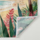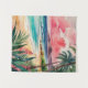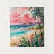 A peaceful tropical shoreline where golden sand meets rolling turquoise waves. Lush palm trees sway under a dreamy pink and teal sunset. The perfect escape for those who love the beach and ocean breeze.