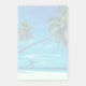 Sticky notes with a tropical themed photo featuring coconut palms stretching out across a secluded white sandy beach. Turquoise waters and an azure blue sky in the background.