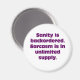 If you're out of sanity but still have sarcasm, put up this warning: "Sanity is backordered. Sarcasm is in unlimited supply." Other colours available.