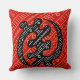 Beautiful mud cloth design pillow in red with the Sankofa symbol on the front and back in patterned black and white.