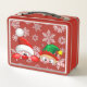 Santa and Elf Cute and funny Characters Peeking Metal Lunch Box