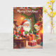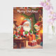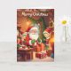 Enjoy a warm and cosy Christmas with this charming greeting card featuring Santa by the fireplace.