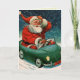 Old fashioned Santa Claus driving what looks to be an electric car through a blinding snowstorm. Chubby red cheeks, bushy white eyebrows and a twinkle in his eye make this a perfectly nostalgic Christmas card with warm wishes your family and friends.