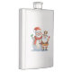 The product is a good size and came exactly as it was pictured. The lid is not attached to the flask, which could be dangerous on drunken nights... The print came out surprisingly well and looks very sharp. Would definitely recommend.