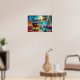 A delightful wall poster of Santa on his sleigh with his faithful reindeer taking him up high into the sky. Poinsettias and sparkling Christmas trees complete the scene. You can customize and personalize - and other products - with your own text, photos and art work.