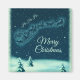 A magnet with a vintage illustration of Santa in his sleigh being pulled by his reindeers. Little stars sprinkle the night sky. Snow covered pine trees on the ground. Vintage retro feel. Text says: Ho Ho Ho Merry Christmas.