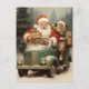 Santa and Kid in a Small Green Car with Gifts Holiday Postcard