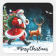 Santa and Reindeer Joyfully Celebrate Square Sticker