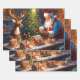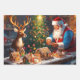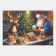 Santa and reindeer make gingerbread house wrapping paper sheet