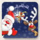 Santa and Reindeer Merry Christmass Happy Cartoon Coaster