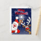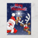 Santa and Reindeer Merry Christmass Happy Cartoon Postcard