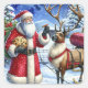 Christmas stickers with an illustration of Santa eating chocolate chip cookies and a reindeer eating carrots on Christmas eve.