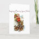 Vintage Santa Claus and reindeer illustration greeting card.