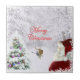 Santa Claus is looking at a reindeer and Christmas tree in a snowscape. Unique Santa and a reindeer in a Christmas scene.