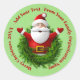 Santa Announcing Your Text Name Year Red Green Classic Round Sticker