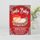 The cutest baby is coming to town this winter, celebrate baby shower with this charming unique invitation. To capture the most joyful time of the year, A cute baby sleeping with Santa Clause hat was digitally drawn with complimenting snowflakes, title design and red background
