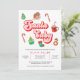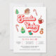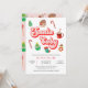 Santa, Baby! This cute baby shower invitation features retro 70s style font in shades of candy pink and gumdrop red. The main feature of this invitation is the hand-painted watercolor Christmas treats featured on the front and back. It is perfect for a Christmas theme baby shower.