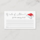 A cute Christmas holiday season baby shower invitation enclosure card that features "Words of Advice" in an elegant script with a heart swash and a watercolor illustration of a red Santa Claus hat.