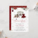 The Santa Baby Christmas Girl Baby Shower Invitation is a delightful and festive celebration theme, combining the magic of Christmas with the joy of welcoming a baby girl. Central to the design is a dressed in a charming burgundy dress, which exudes a cosy holiday feel. The dress is beautifully embellished with winter flowers adding a touch of seasonal elegance and nature’s wintry charm. Other Christmas-inspired elements such as wrapped gifts, snowflakes, and ornaments surround the scene, creating a cheerful and festive environment. Matching items available.