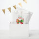 Red and green bow, Santa hat and snowflakes Christmas Santa Baby shower paper favor bag. This festive Christmas baby shower design is adorned with a prominent, impressive red and green bow covered with snow and with a snowflake at its center and a Santa hat. The phrase "Santa Baby" is written in script and decorative typography.