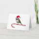 A cute junco bird wearing a Santa cap perches on a candy cane on this fun holiday Christmas card.
