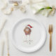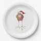 9" white paper plate featuring bird in Santa hat