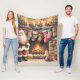 Santa by Fireplace Christmas Stockings Fleece Blanket