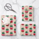 Novelty Christmas wrapping paper sheets with a pattern of cacti in Santa outfits on a sand brown background.