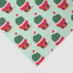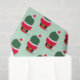 Novelty Christmas tissue paper with a pattern of cacti in Santa outfits on a light green background.