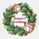 These fun customisable baseball themed Christmas stickers/envelope seals feature illustrations of an evergreen holiday wreath with Santa capped baseballs. Customisable "Season's Greetings" message in centre to add your own personalised holiday message for family, teammates, customers and more.