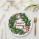 These fun customisable baseball themed Christmas party paper plates feature illustrations of an evergreen holiday wreath with Santa capped baseballs. Customisable "Season's Greetings" message in centre to add your own personalised holiday message for family, teammates, customers and more.
