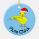 A cute yellow chick wearing a Santa hat and playing a flute is a humorous music gift design to tickle the funny bone of woodwind musicians in orchestra, concert and marching bands during the winter holidays.