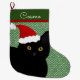 Santa Cat Black With Yellow Eyes Personalised Large Christmas Stocking