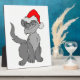 GRAY SANTA CLAUS CAT WEARING RED CHRISTMAS HAT