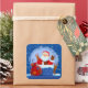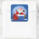 Santa Chimney Reindeer Sack Add Year Text Blue Square Sticker