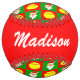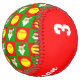 Santa Christmas Custom Player Name/Number/Position Softball: A sweet Christmas gift idea for softball players and fans, featuring a real regulation size softball with a chequered Christmas pattern with a cute Santa Clause face on the green squares, and bright yellow fastpitch softballs on the red squares. Personalise it with your own softball player's name, position and jersey number.