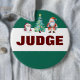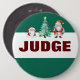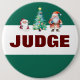 Christmas themed name tag Judge button with cute gnome, Christmas tree and Santa . Perfect Judge button for Christmas fairs and events. Great for judging contests for the holiday season.