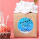 Personalised Christmas stickers with a black silhouette of Santa riding in his sleigh being pulled by his reindeer flying across the sky. Believe written in a trendy script font. The background is an icy blue frosty snowflake design.
