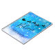 Christmas spiral notebook with a black silhouette of Santa riding in his sleigh being pulled by his reindeer flying across the sky. Believe written in a trendy script font. The background is an icy blue frosty snowflake design. Personalize with a name and title.