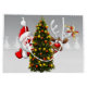 Santa claus and reindeer behind a christmas tree.j large gift bag