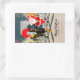 Santa Claus and Rooster Champagne Toast to New Yea Rectangular Sticker