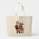 Santa Claus and Rudolph Cartoon Large Tote Bag